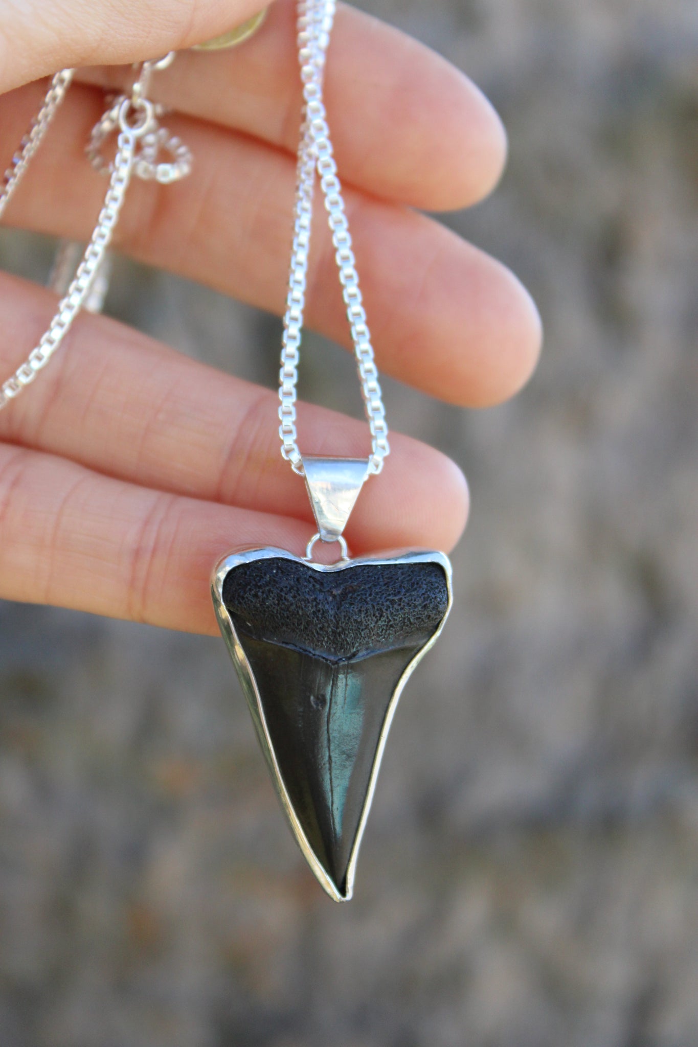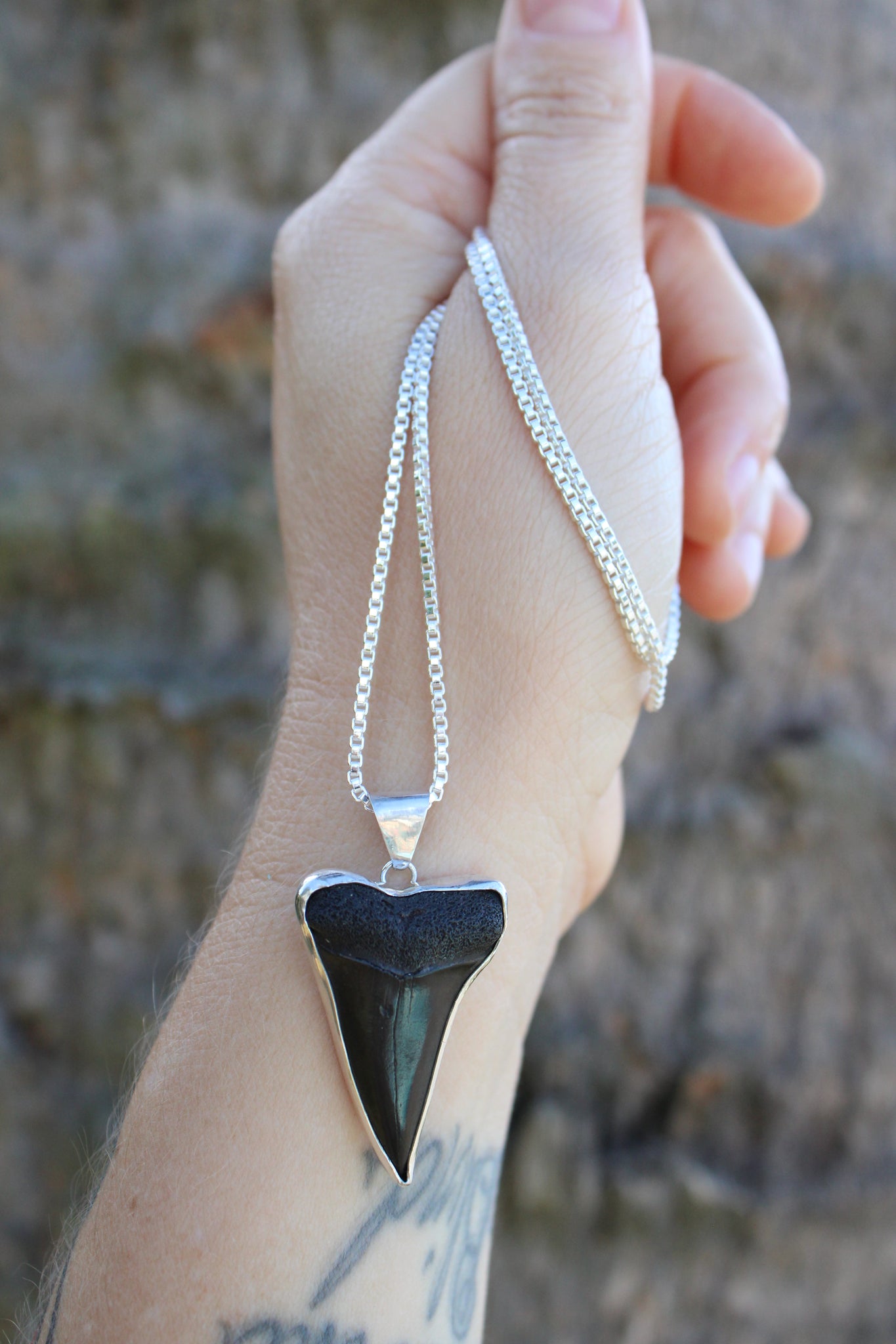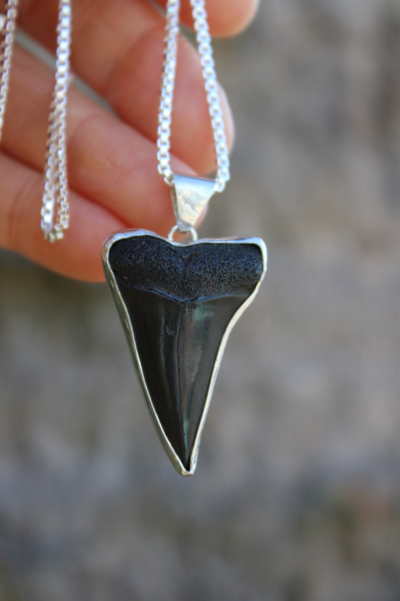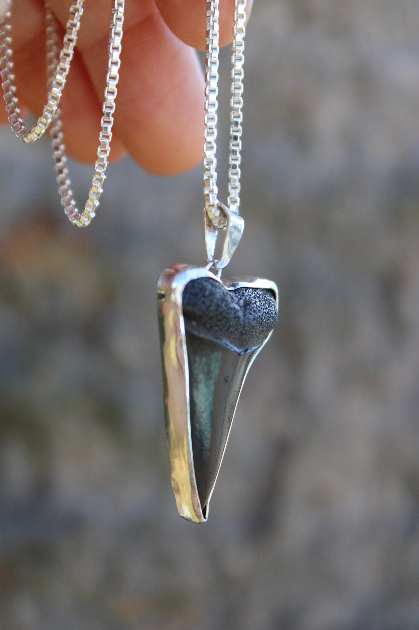 Fossilized Mako tooth offers grounding while the silver provides healing and protection.